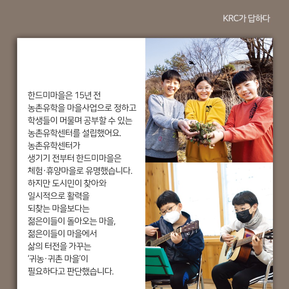 한국농어촌공사는 농촌마을에 활력을 더하기 위해 농촌유학 지원사업을 추진하고 있습니다.