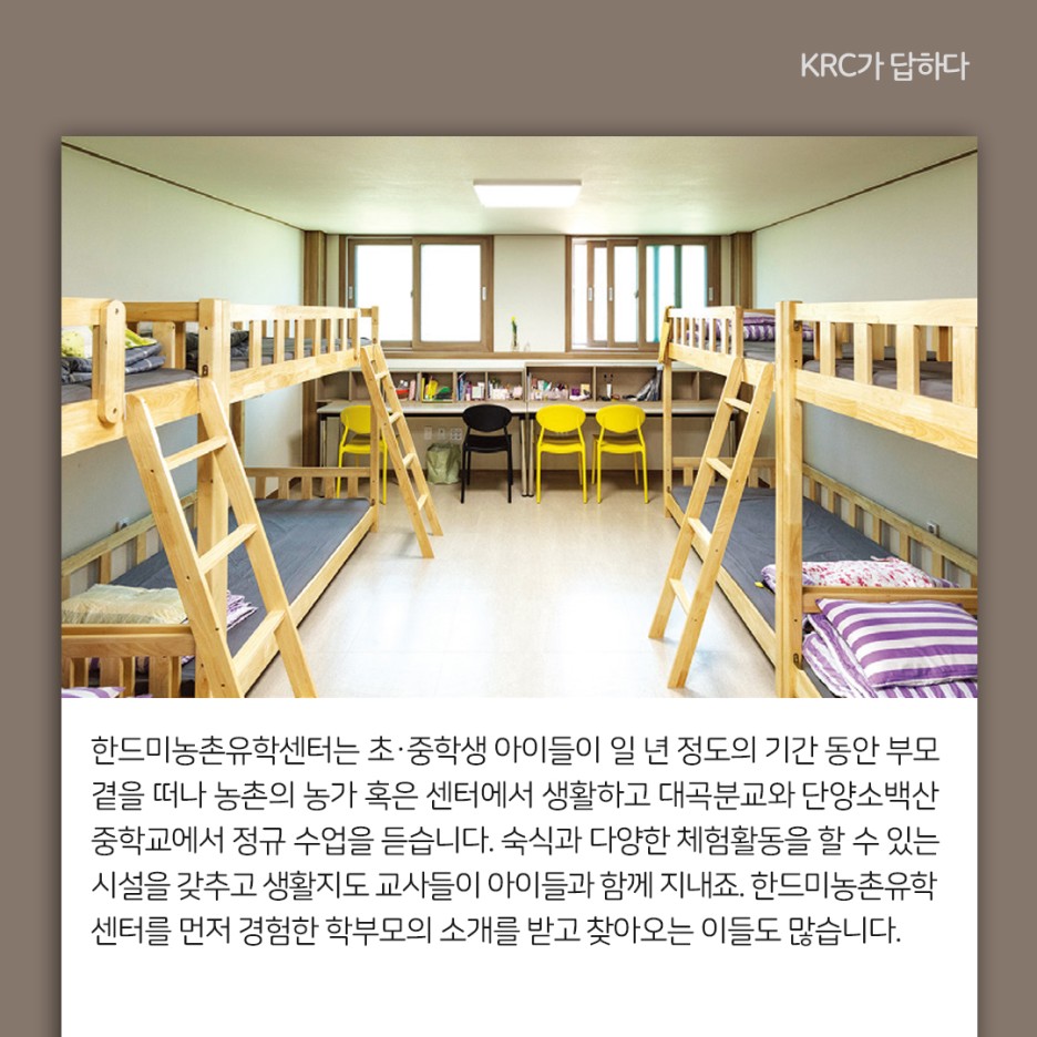 한드미농촌유학센터는 초·중학생 아이들이 일 년 정도의 기간 동안 부모 곁을 떠나