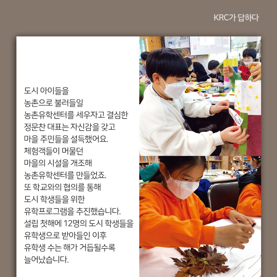 이후 정문찬 대표는 한국농어촌공사와 농촌유학사업을 시작하여 지금까지 함께 이끌어오고 있습니다.
