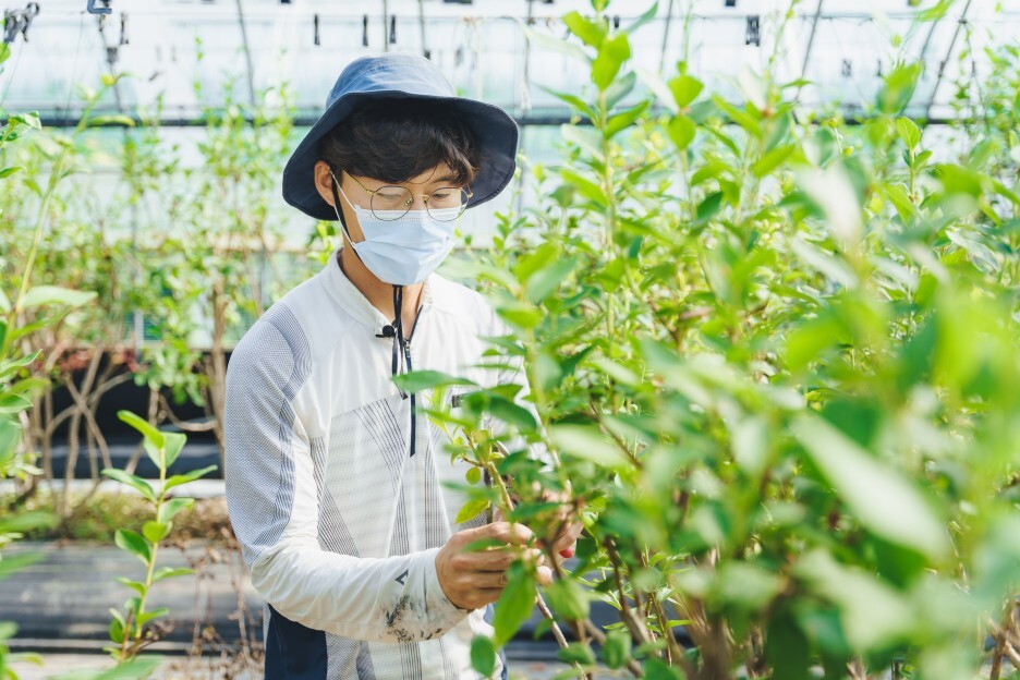 “블루베리는 3월에서 6월 수확을 마치면 다음 해까지 수익이 없기 때문에 이를 보완할 수 있는 작물 도입을 고민했어요. 블루베리와 일손이 겹치지 않고 연중 기복이 없는 조경수가 제격이었죠.”