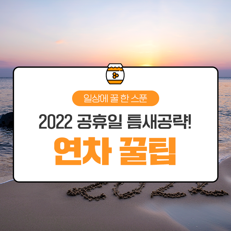 새해가 밝았습니다 :-) 새로움이라는 단어에 설레기도 하고, 어떤 것부터 시작할까 계획도 세우곤 할 텐데요. 하지만, 가장 먼저 하는 것은 바로 '2022 공휴일 확인'이 아닐까 싶습니다. 특히 직장인이라면 더더욱 그럴 거예요. 소중한 우리의 연차! 어떻게 해야 현명하게 쓸 수 있을까요? 연차로 황금연휴 만드는 프로직장인이 되어보자고요? 그럼, 연차 꿀팁 살펴보러 고고!