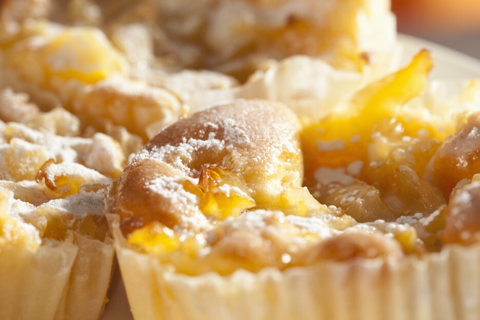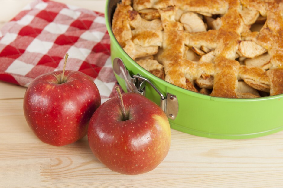 ⑤ 사과파이 윗면에 달걀물을 바르고, 180도로 예열한 오븐에서 12~15분 정도 노릇하게 구워 주세요. (오븐이 없을 때는 달걀물을 바르지 않고, 팬에 약간의 버터를 두른 후 약한 불에서 앞뒤로 노릇하게 구워 주세요.)