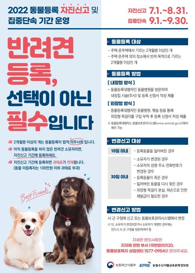 동물등록이 법적 의무사항입니다.