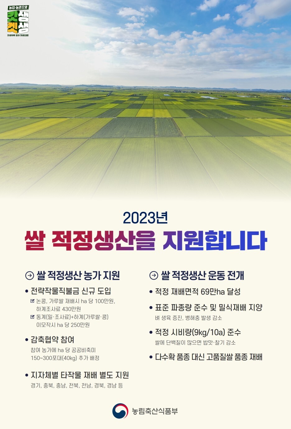 2023년 쌀 적정생산을 지원합니다