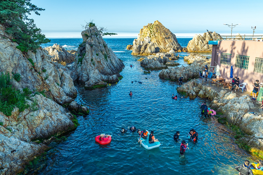 청정 해역에서 수상 액티비티를 즐길 수 있는 장호항!