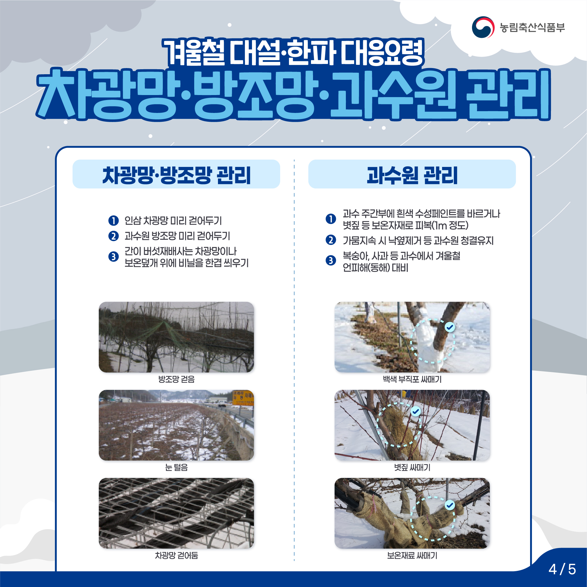 -과수 주간부에 흰색 수성페인트를 바르거나 볏짚 등 보온자재로 피복 (1m 정도)