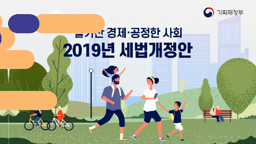 활기찬 경제! 공정한 사회! 2019 세법개정안 활기찬 경제! 공정한 사회! 2019 세법개정안을 통해 함께 잘 사는 혁신적 포용국가를 만들어 가겠습니다! 자세한 내용은 위의 동영상을 통해 확인해주세요~ 소식이 주렁주렁 2019.09.04